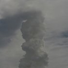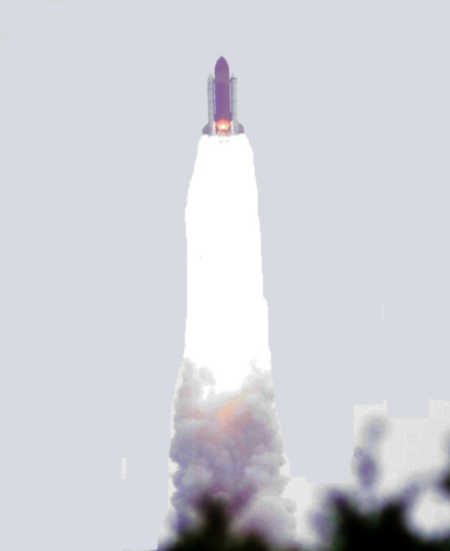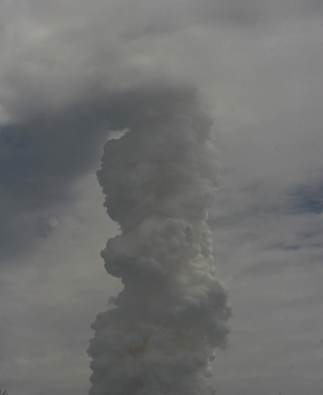 The Space Shuttle rapidly disappeared into cloud, leaving just a smoke trail.