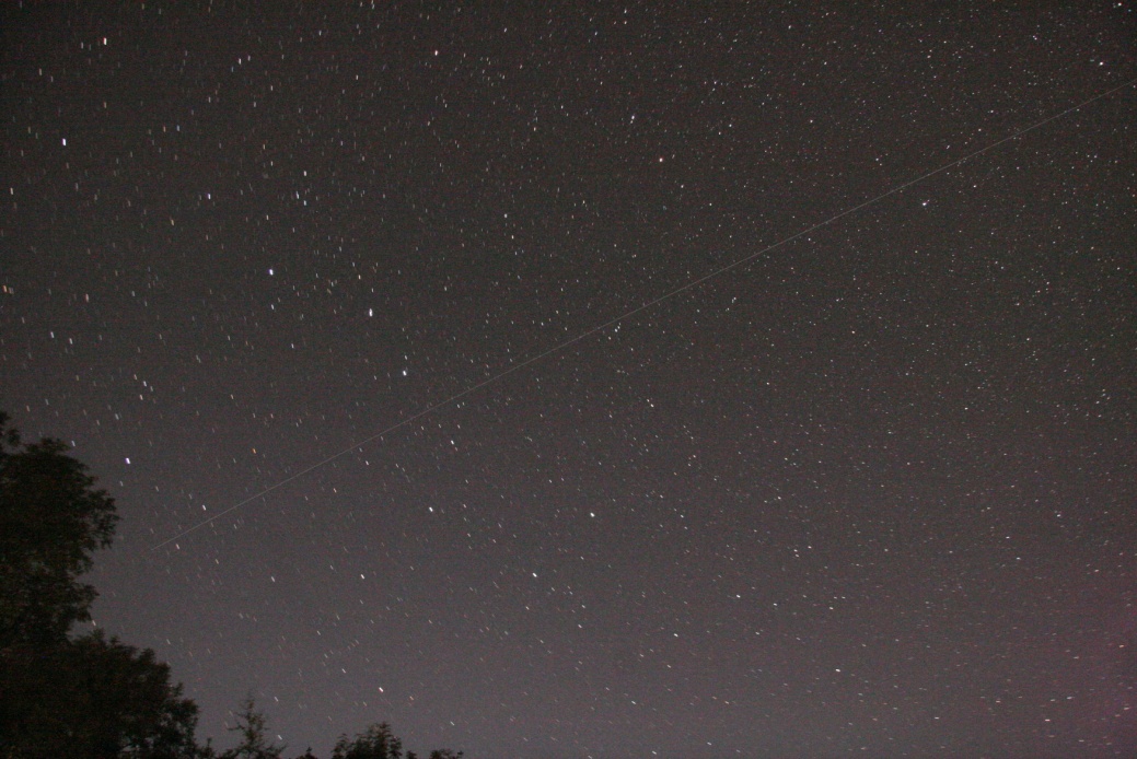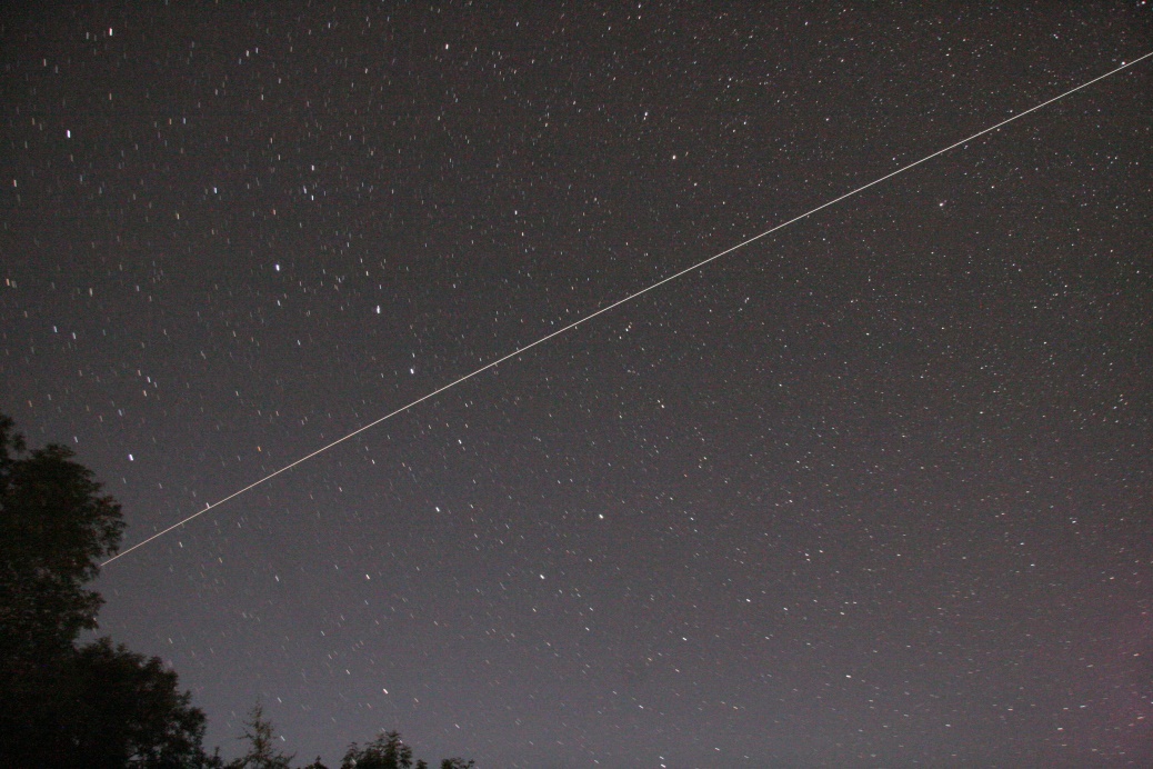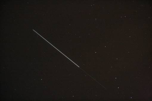 The International Space Station (ISS) regularly passes through our skies. It appears like a very bright star moving from west to east, at an angular velocity similar to a plane, and taking a few minutes to cross the sky. During morning passes, especially the very early morning ones, the satellite may be in the Earth’s shadow, and therefore invisible, for the first part of a pass. Similarly, the satellite may enter the Earth’s shadow during the late evening passes, and disappear from view. Note that many other, fainter, satellites are also visible. The ISS is by far the brightest, being as large as a football pitch.