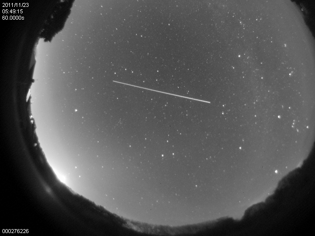 The International Space Station moving from Gemini to Ursa Major on 23 November 2011 (Guernsey 60-second all-sky camera image).