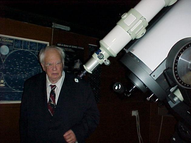 Sir Patrick Moore visited our observatory 10th March 2000 and took the opportunity to use our 16" Meade.